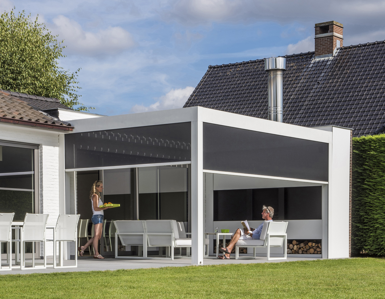 U bepaalt immers zelf de hoeveelheid zonlicht en ventilatie door de stand van de lamellen te veranderen. Alle zij-elementen zijn naadloos geïntegreerd om een strak design te behouden.