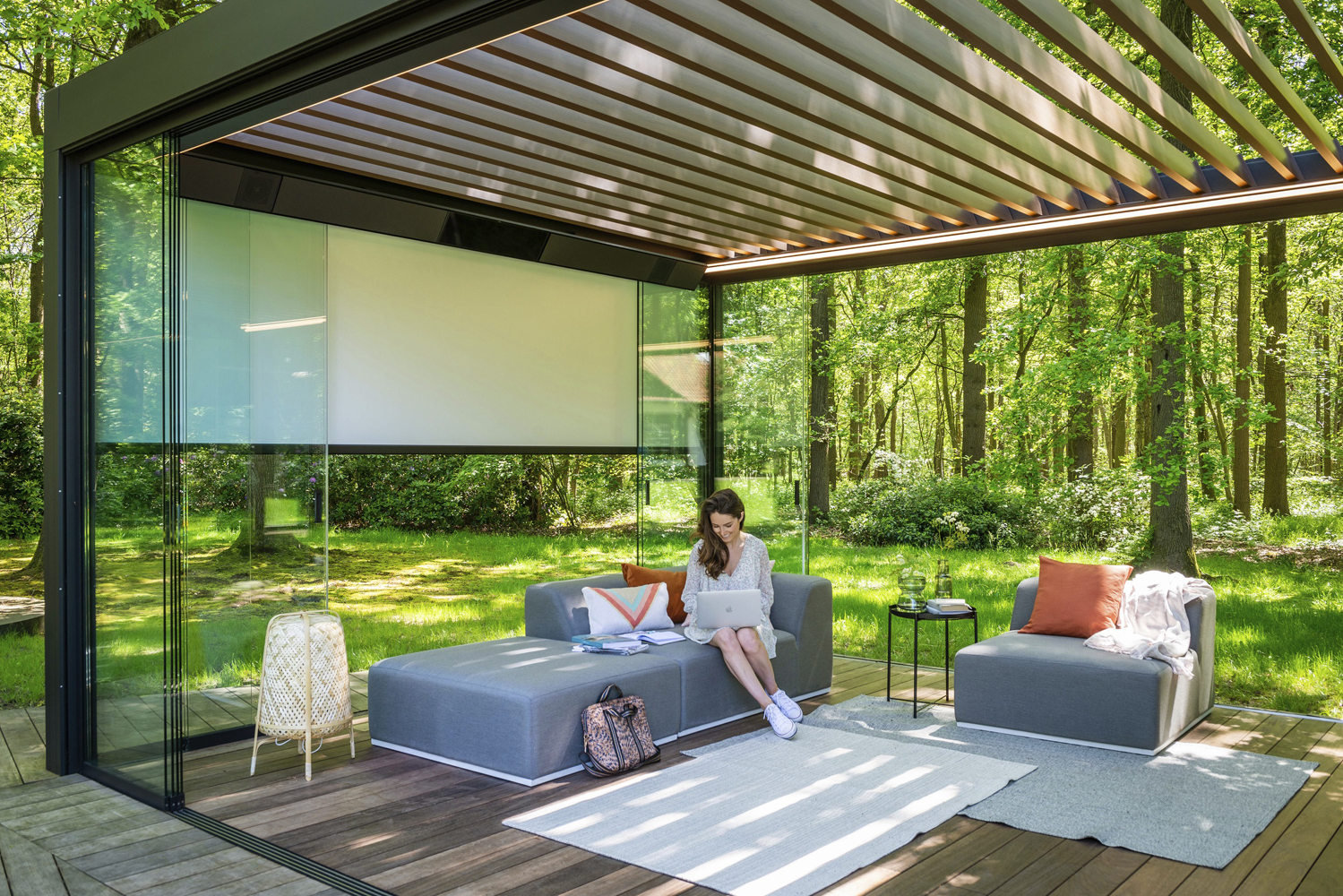 U bepaalt immers zelf de hoeveelheid zonlicht en ventilatie door de stand van de lamellen te veranderen. Alle zij-elementen zijn naadloos geïntegreerd om een strak design te behouden.
